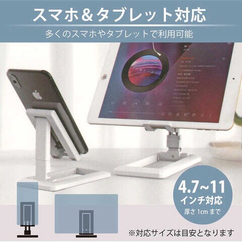 目安として厚さ約1cm、約4.7~11インチサイズのスマホやタブレットにご利用いただけます。