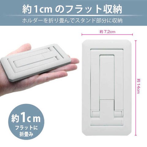 仕様1:サイズ:約7.2×14×1cm(収納時)    約7.2×14×15cm(展開時)重 量:約70g主な材質:プラスチック+シリコン対 応:約4.7~11インチ、厚さ 約1cmまでの機器