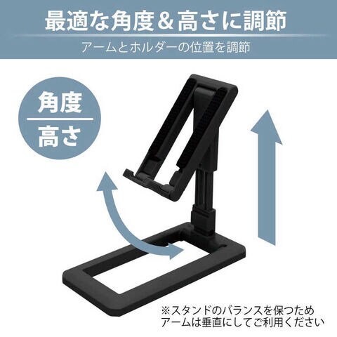 ホルダー部分で角度を調節し、アームで高さを調節できます。