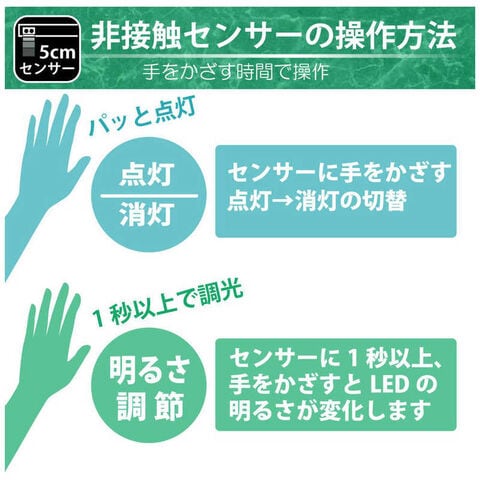 センサーに手をかざすとLEDの点灯/消灯が切替できます。