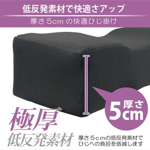 本製品は、ひじ掛け椅子に簡単に取付けてご利用いただける、肘への負担を軽減する低反発素材でできた厚さ5cmのクッションパッドです。