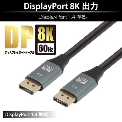 仕様1:[対応出力機器]DisplayPortを搭載したパソコンなど[対応表示機器]DisplayPortを搭載したディスプレイなど[コネクタ]DisplayPort(オス)- DisplayPort(オス)[プラグ]金メッキプラグ[規格]DisplayPort 1.4準拠[対応解像度]最大 8K(7680×4320)/60p[データ転送]最大 32.4Gbps