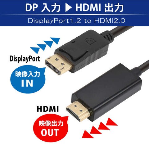 日本トラストテクノロジー 変換ケーブル 4k60Hz対応 [HDMI⇔DisplayPort / 2m] ブラック JT-DPHD2M-BK