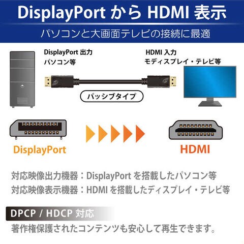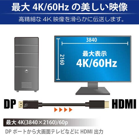 DisplayPortから出力された高精細な映像をHDMI出力に変換します。