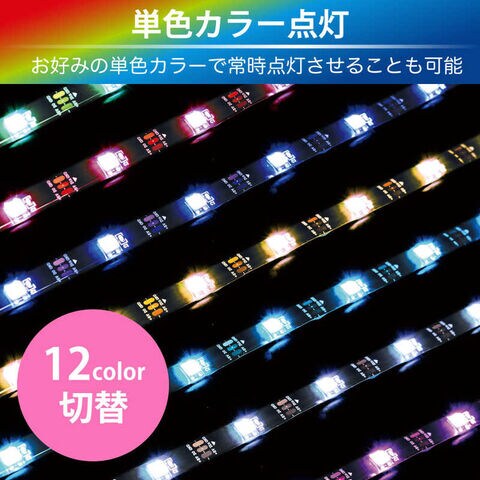 「流れるイルミネーション」機能だけでなく、12色からお好み色をボタン一つで切り替えることができます。