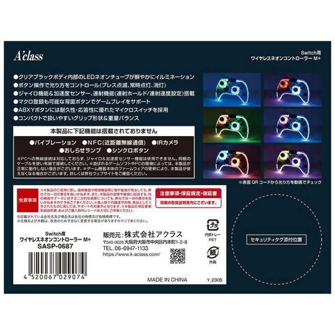 アクラス Switch用ワイヤレスネオンコントローラー M+ SASP0687 SASP-0687