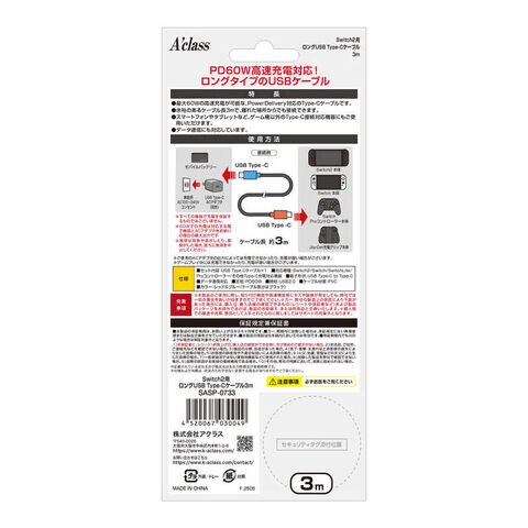 アクラス Switch2用ロングUSB Type-Cケーブル SASP-0733