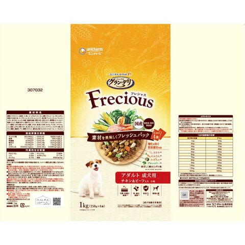 ユニチャーム グラン・デリ Frecious(フレシャス)アダルト成犬用 チキン&ビーフ入り 1kg(250g×4袋)