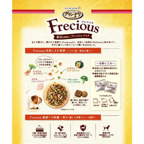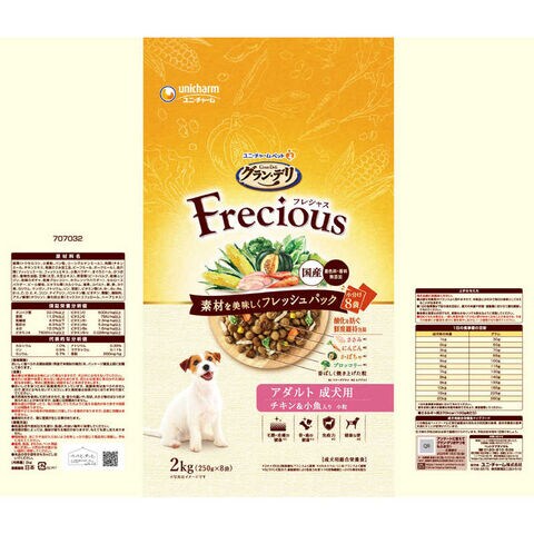 ユニチャーム グラン・デリ Frecious(フレシャス)アダルト成犬用 チキン&小魚入り 2kg(250g×8袋)