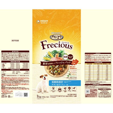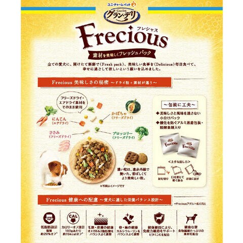 ユニチャーム グラン・デリ Frecious(フレシャス)アダルト成犬用 低脂肪設計 チキン&ビーフ入り 1kg(250g×4袋)
