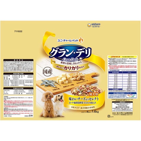 ユニチャーム Gran-Deli(グラン・デリ)カリカリ仕立て 成犬用 味わいチーズ入りセレクト 1.6kg(小分けパック4袋入)