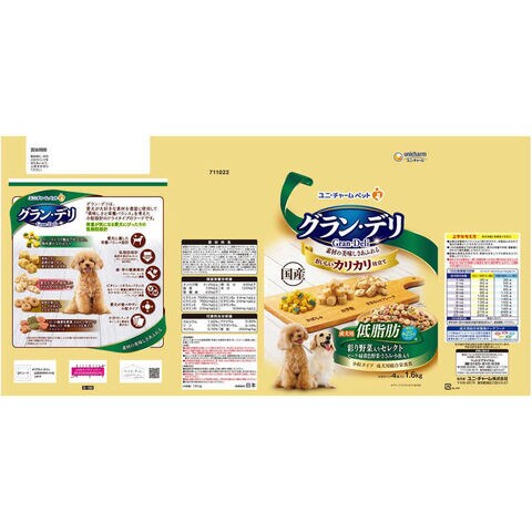 ユニチャーム Gran-Deli(グラン・デリ)カリカリ仕立て 成犬用 低脂肪 彩り野菜入りセレクト 1.6kg(小分けパック4袋入)