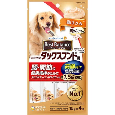 ユニチャーム ベストバランスおやつ ミニチュア・ダックスフンド用 高齢向け 鶏ささみ 15g×4本