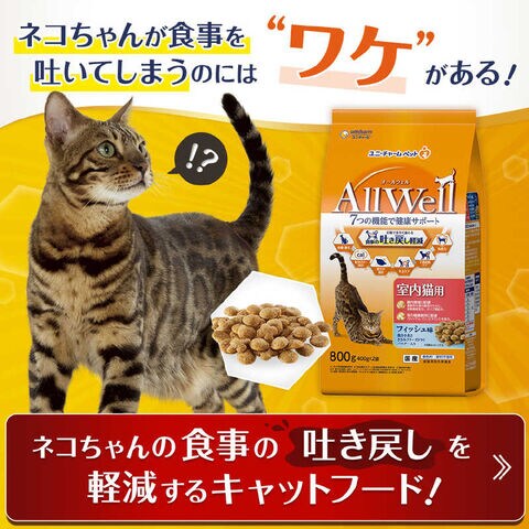 ユニチャーム AllWell 室内猫用 フィッシュ味挽き小魚とささみのフリーズドライパウダー入り 1.6kg