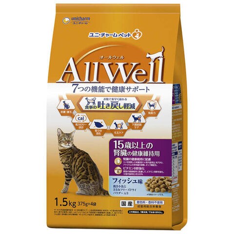 ユニチャーム AllWell 15歳腎臓健康維持 フィッシュ味挽き小魚とささみフリーズドライパウダー入り 1.5kg
