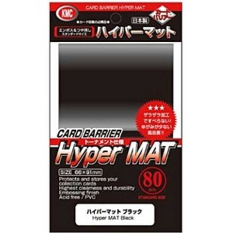 「ハイパーマット ブラック」は、マット面にエンボス(ザラザラ)加工を施し、傷が目立ちにくいトーナメントプレーに最適なカードスリーブです。