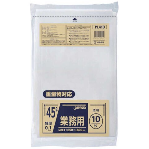 ジャパックスの業務用45Lごみ袋は、厚み0.1mmの特厚タイプで破れにくく丈夫な設計です。