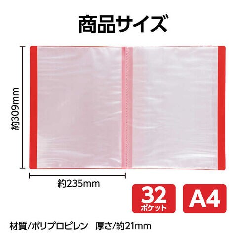 アーテック クリアブックA4 横入れ 32ポケット レッド 5611