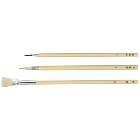 セット内容:面相筆(中):馬毛、彩色筆(中):羊毛、平筆4号:羊毛
