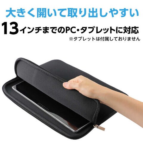 仕様1:[対応機種]13インチまでのノートパソコン / タブレットPC[商品サイズ] 外寸:約345×245×26mm 内寸:約335×235mm[重量]105g[材質]ポリエステル