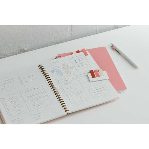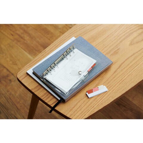 「丈夫でくり返し使える」「厚くてつまみやすい」など機能面に特長があるのはもちろん、従来の紙・フィルム素材とは違った、布素材ならではの上質感のある落ち着いた雰囲気が布・革製表紙の手帳やノートにもしっくり馴染みます。