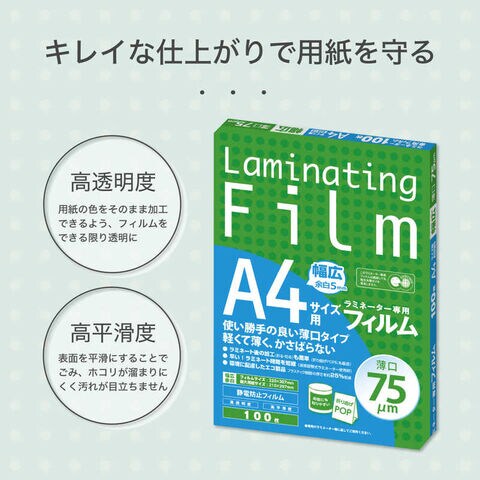 アスカ ラミネーター専用フィルム 75μm A4サイズ 100枚入り Asmix [A4サイズ /100枚] BH916