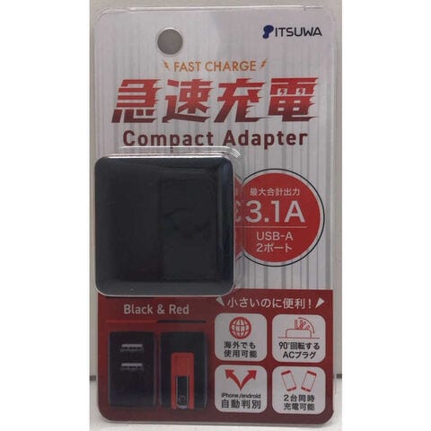 イツワ商事 AC充電器 コンパクトタイプ 3.1A USB-A×2 [2ポート] 黒赤 MCAA2001BR