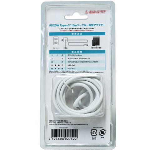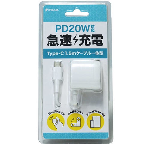 イツワ商事 PD20W AC充電器 Type-Cケーブル一体型 折り畳みプラグ MAC2202WH