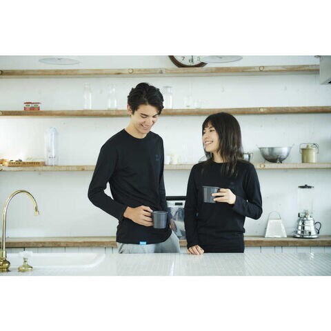 衿から肩の縫い目はテープで包み、アームホール、脇、袖は外縫い仕様で、縫い代が肌に触れるストレスを軽減。