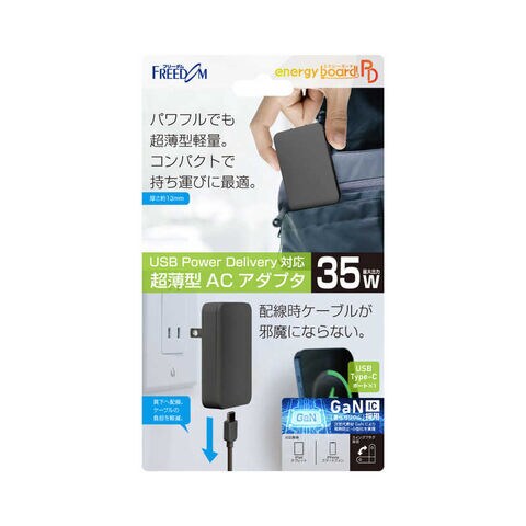 フリーダム Type-C 平型AC充電器35W PD対応 Gan搭載 [1ポート /USB Power Delivery対応 /GaN(窒化ガリウム) 採用] ブラック FUSB-ACG351CBK