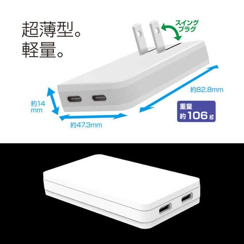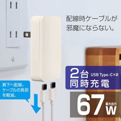 Type-Cポートx2ポートで最大出力67WパワフルなAC充電器です。