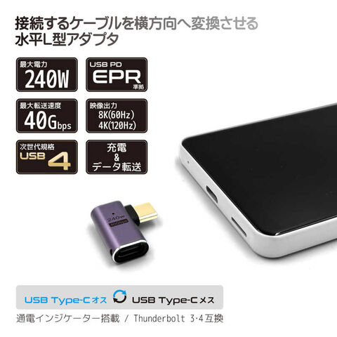 フリーダム Type-C変換アダプター 水平L型(オス-メス) PD EPR240W FUSB-CCA02FL
