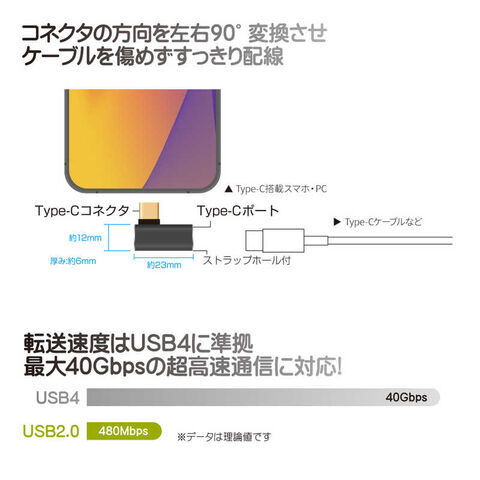 Type-Cコネクタの方向を左右90度変換させ、ケーブルを傷めずすっきり配線。
