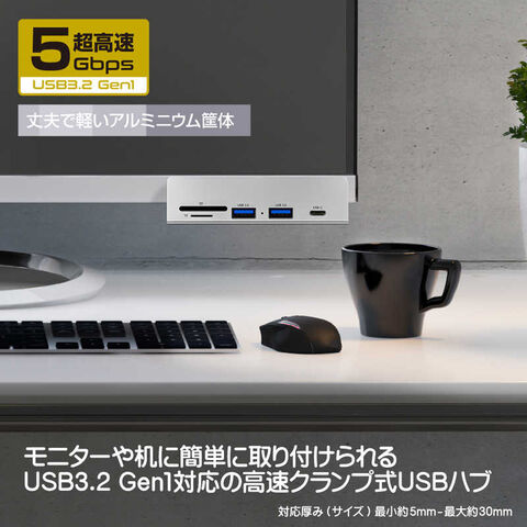 インターフェース:USB仕様 Ver3.2 Gen1(USB3.1 Gen1/3.0)準拠(USB Ver2.0/1.1上位互換)コネクタ形状:(周辺機器側) USB Type-Aポート×2・USB Type-Cx1(ダウンストリーム)・スロットmicroSD&SDカード対応:(パソコン側) データ通信用USB Type-Aポート×1(アップストリーム)、給電用USB Type-Cポート(DC/5V)×1