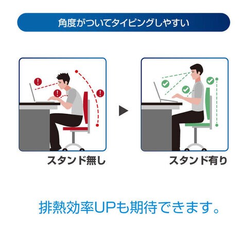 ノートPCの背面を浮かせることができるので、排熱効率UPにもなります。