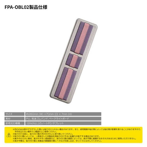 仕様1:[参考対応機種]12インチ以上のノートパソコン[Sサイズ]約W260xD70xH7mm[素材]ポリウレタン樹脂、高速ゴムバンド、ベークライトボード