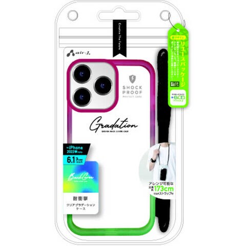 エアージェイ iPhone 14 Pro 6.1インチ グラデーションバックカバーケース ストロベリー×グリーン ACP22PNC6