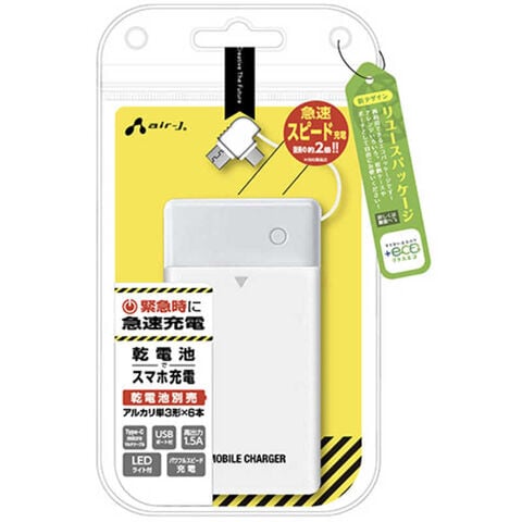 エアージェイ 単3アルカリ6本型乾電池充電器(電池無し)micro&TYPE-Cケーブル付きWH BJEUSB6NBWH