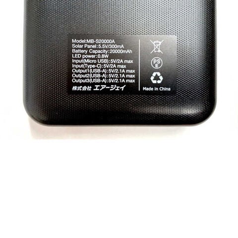 エアージェイ 災害対策用ソーラーモバイルバッテリー20000mAh BK ブラック[3ポート] MB-S20000ABK