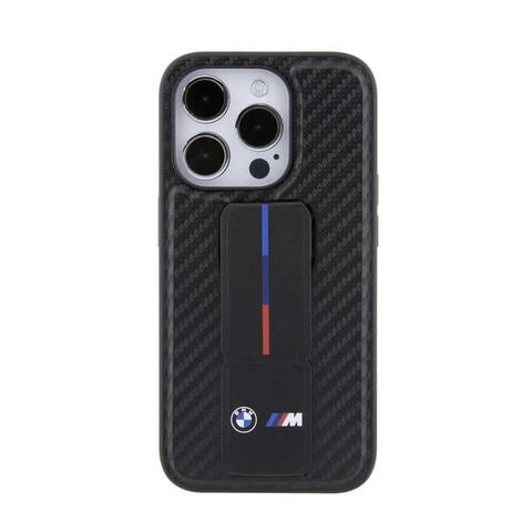 BMWワイセンスケースiPhone15 Pro用 PUカーボン グリップスタンド 背面ケース