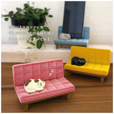ゲームをするときや動画を見るときに便利なスマホスタンド。お気に入りのソファですっかりおねむの子猫の横にそっとスマホを置いてみる。モケモケの起毛の加工でスマホにやさしく子猫もぐっすり。