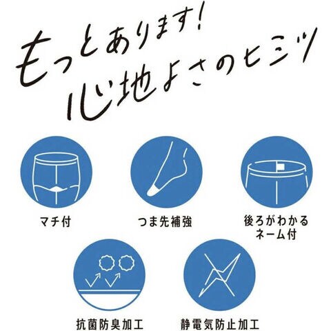 仕様1:■SCYゾッキ ■伝線しにくいノンラン設計 ■幅広ソフトウエスト ■パンティ部ヒップサポート立体設計 ■マチ付・ネーム付 ■足型セット ■つま先補強 ■抗菌防臭・静電防止 ■段階着圧設計(足首13hPa)