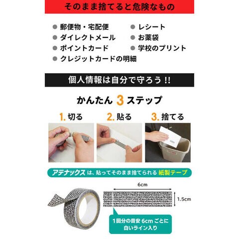 ●情報が透けにくい特殊パターンのテープなので「貼って 隠して そのまま捨てられる!」