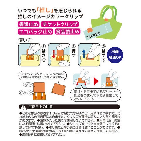 ●書類止め、チケット整理、エコバッグ止め、食品袋止めなど いろいろな用途に使えるクリップです。
