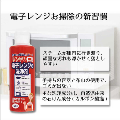 毎日使う電子レンジを簡単お掃除 チンして蒸気の力で汚れを浮かしてふき取るだけ!1本で洗浄&消臭