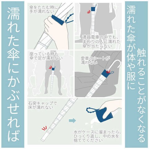 名前の通りタケノコのようにニョキッとスライドすれば傘の水滴問題が全て解決可能なSDGsやニューノーマルに対応した人・環境にやさしい傘カバー!スーパー等の入店時・通勤/通学の交通機関利用時・マイカーの常備品としてご利用いただけます。