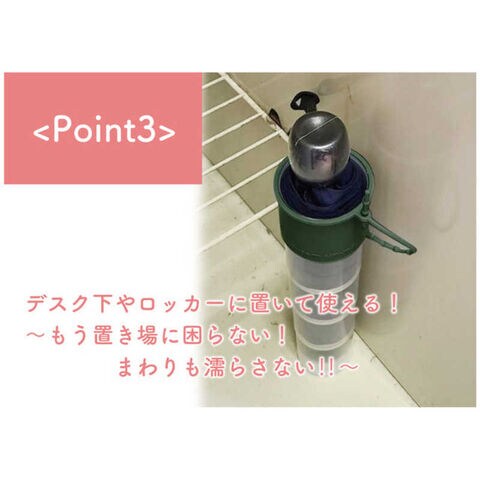 名前の通りタケノコのようにニョキッとスライドすれば傘の水滴問題が全て解決可能なSDGsやニューノーマルに対応した人・環境にやさしい傘カバー!スーパー等の入店時・通勤/通学の交通機関利用時・マイカーの常備品としてご利用いただけます。持ち運びや保管に便利な防水ケース付です。