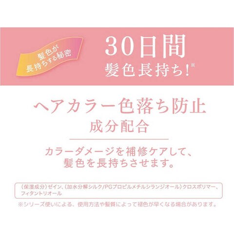 カラーダメージでごわついた毛髪の水分バランスを整え、ヘアカラーの色落ちを防ぎながら、もこもこ泡でなめらかに洗い上げるシャンプー。