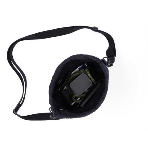 巾着タイプのレンズポーチ、カメラ本体の収納に対応したショルダーストラップ付きモデル。