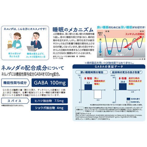 GABAには睡眠の質(眠りの深さ、すっきりした目覚め)の向上に役立つ機能があることが報告されています。
